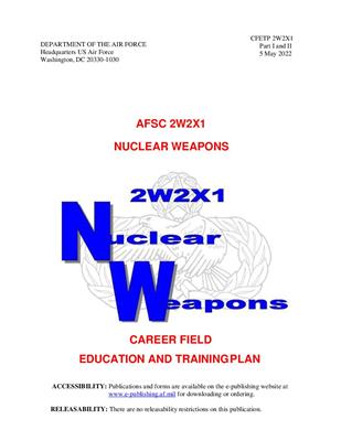 描述信息:本职业领域教育和培训计划 (CFETP) 是一份全面的教育和培训文件,它确定了核武器专业的生命周期教育/培训要求、培训支持资源和最低核心任务要求。该 CFETP 是根据 DAFI 36-2670,全力开发的要求开发的。CFETP 将为员工提供一条通向成功的清晰职业道路,并将在职业领域培训的各个方面灌输严谨的态度。注意:担任相关职位的平民将使用第 II 部分来支持职务职位资格培训。